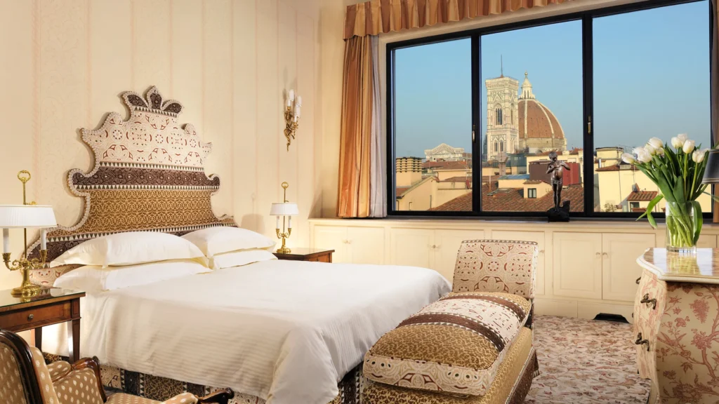 This storied property offers a quintessential Florentine experience with its perfect location and authentic atmosphere. Having hosted notable figures from poets to royalty throughout its history, the hotel combines rich cultural heritage with contemporary luxury. Its central position provides easy walking access to Florence’s major attractions, luxury boutiques, and dining destinations.